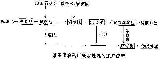 對于農(nóng)藥廢水的治理,生化法是可行、成熟的方法。但是由于農(nóng)藥廢水成分復雜、污染物濃度高、毒性大,直接用生化法處理很困難,一般要輔助以適當?shù)念A處理或配水稀釋,使其進生化處理系統(tǒng)的水質(zhì),控制在COD1,000-1,500mg/L,有機磷40-120mg/L,處理后大多可使COD≤150mg/L。